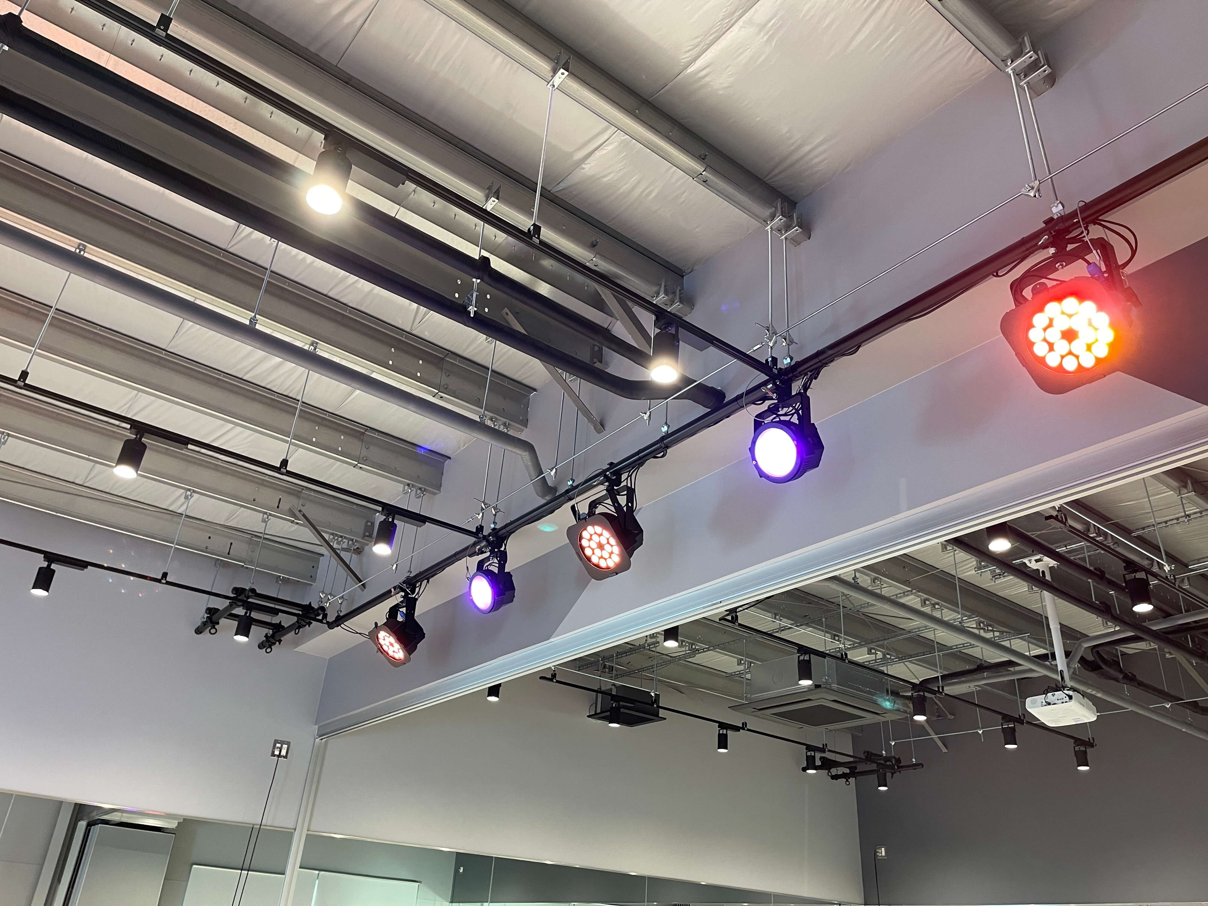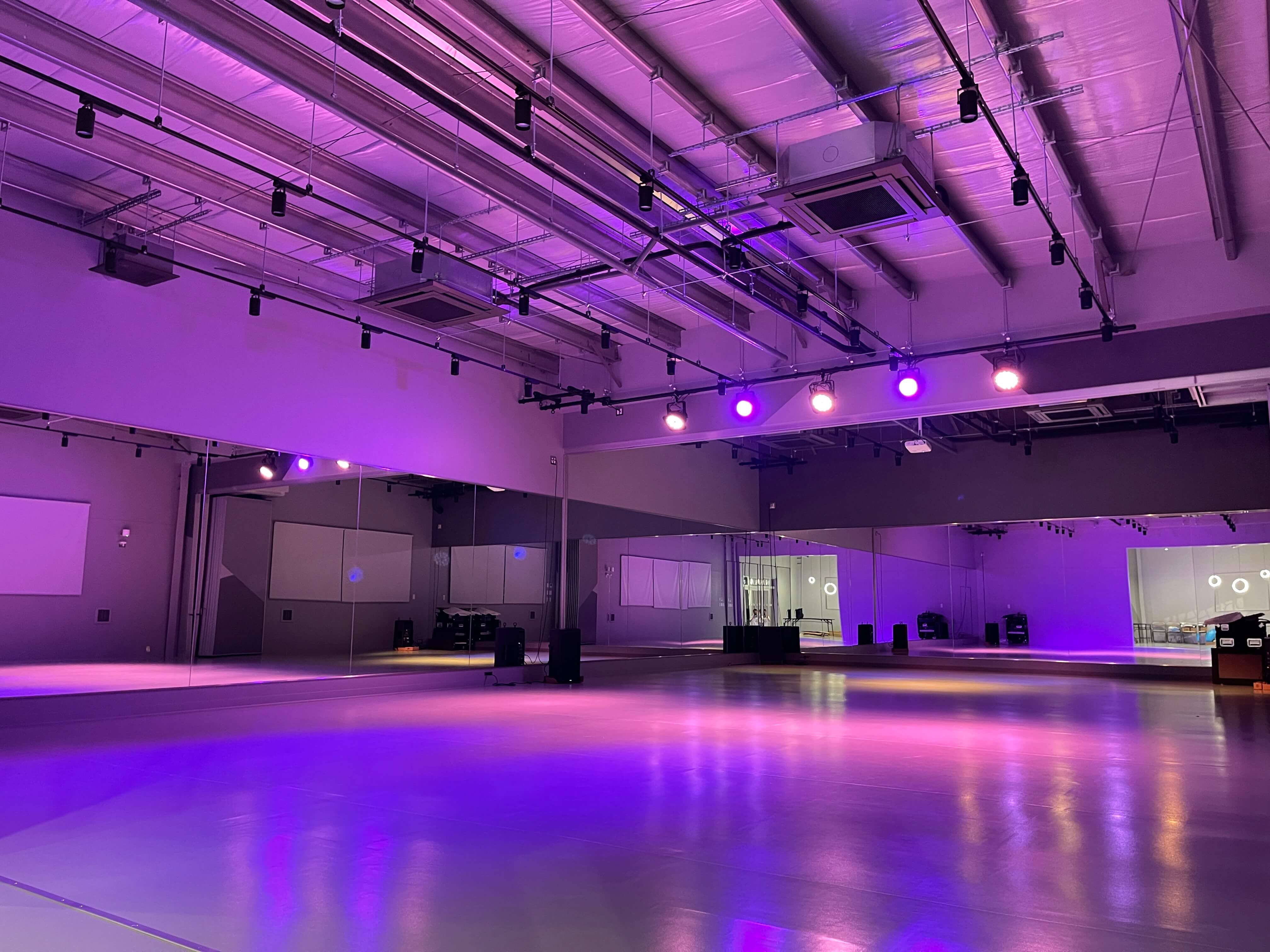 最新の音響設備、イベントの実施が可能な舞台照明、踊りをすぐに確認できるプロジェクターと、studio KAJIMYAには育成するために必要な全てが揃っています。